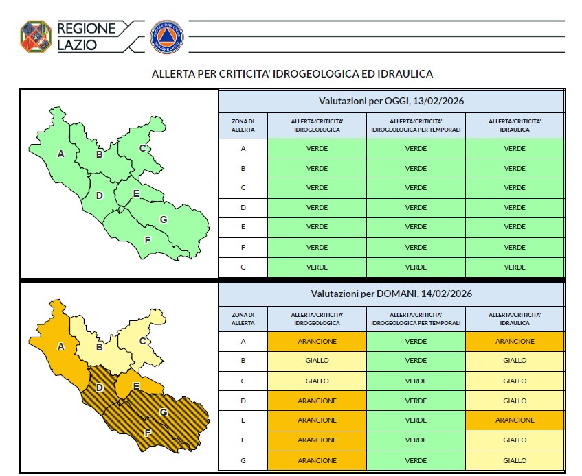 sabato 14 Febbraio 2026, e per le successive 12-18 ore, si prevedono sul Lazio: